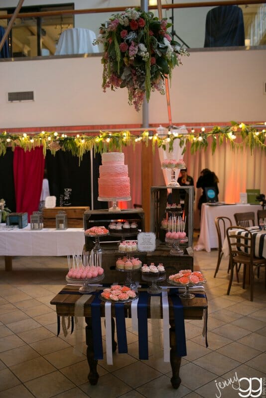 In October we created a dessert table for an exclusive Seattle wedding event for brides and grooms to visit and meet the industry’s top vendors. This was not your typical wedding show. Event lighting, plenty of food, cocktails, performances and an aerial artist greeting you upside down with a glass of champagne when you walked in the door…well those were just a few of the antics that went on. It was an incredible night and we had an absolute blast participating!