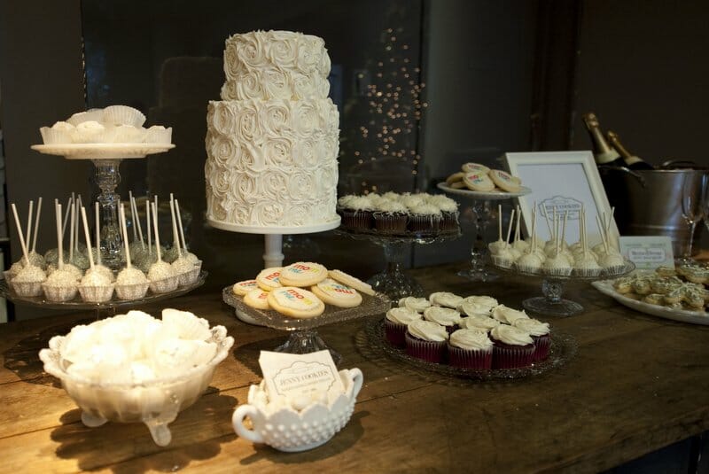 All of the gorgeous cake plates and display pieces on our tables were provided by Minted and Vintage, a dessert display company in LA.
