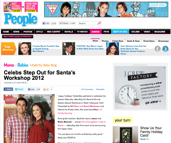 The event was so much fun. I had the chance to meet fellow Seattle-ites, Bachelor alums Jason and Molly Mesnick, and chat about their upcoming baby due this March. Pregnant Malin Akerman was just as cute as can be and even whispered the sex of her baby to me. Eek! So exciting. My sweet friend Tiffani Theissen came with her darling daughter Harper, who loved our cookie decorating station. Gilles Marini remembered us from last year’s event and left his family behind to sneak treats from our North Pole Bakery table. And my home away from home LA family, the whole Spelling/McDermott crew came out to kick off the holiday season with us. I always love seeing my girl Stella, the most fashionable 4 year old around!