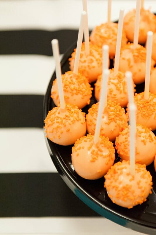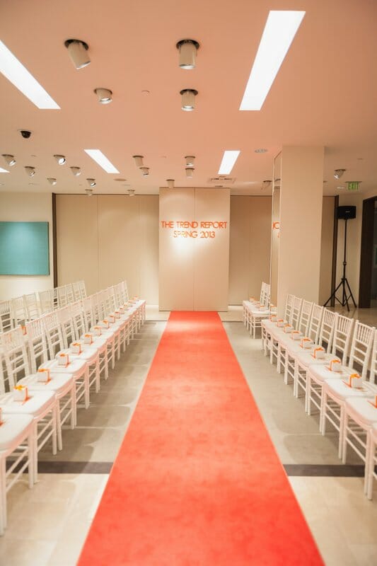 A couple of weeks ago I designed a dessert bar for Neiman Marcus’s Spring Trend Event fashion show in Bellevue. It was so fun to pull ideas from their spring look book. Orange is the big call out color this season, with blue following right behind. It’s all about the prints, prints, prints, so I pulled patterns from different pieces from designers like Alice + Olivia, Brian Atwood, Akris and more, and made them into printed sugar cookies! The bright orange and yellow desserts were set atop blue cake plates, and the whole table was pulled together with the black and white striped runner on the white lacquer table. Such a great event to be a part of, fashion and desserts, what a perfect combination!