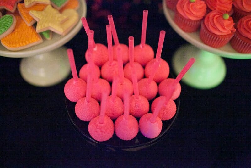 With neon cake pops, cupcakes, 80’s shaped sugar cookies, and a two tier multicolor cake with a giant hot pink bow on top, I think we nailed it!