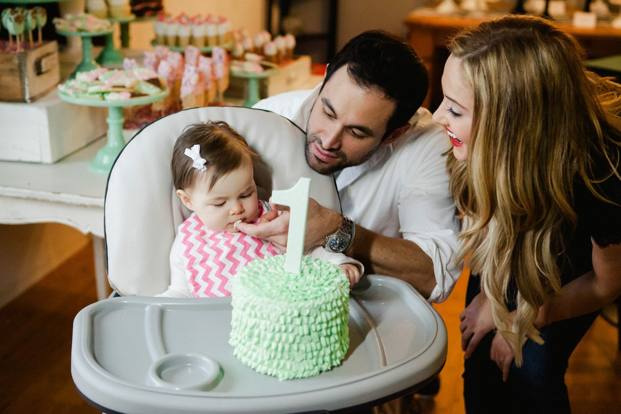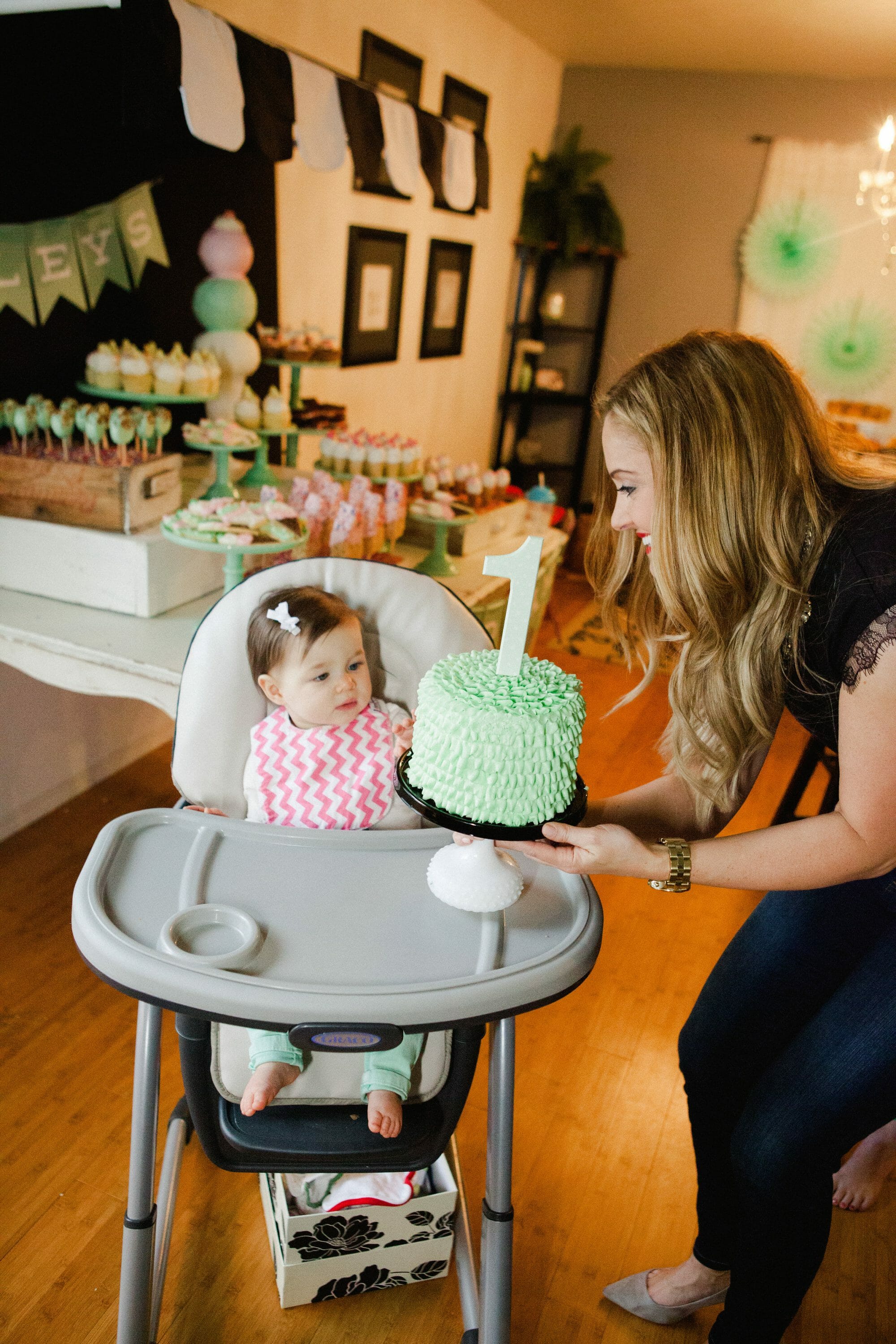 The Bachelor’s Jason and Molly Mesnick celebrated their daughter Riley’s 1st Birthday last weekend with a mint green, black and white themed soiree! It’s hard to believe sweet Riley is already a year old. It seems like yesterday I was baking up a storm for Molly’s baby shower!