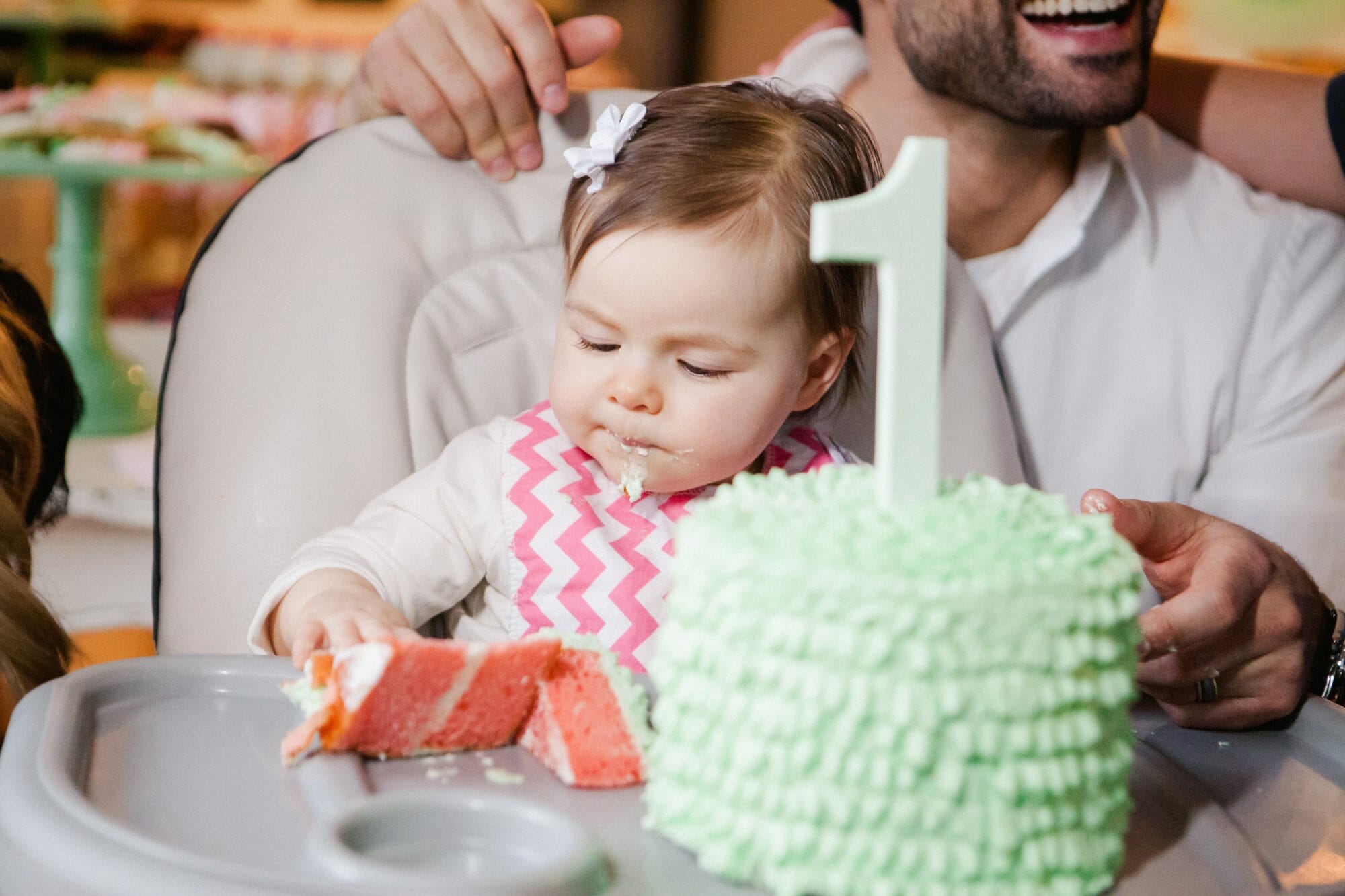Sweet Riley was a perfectly mannered lady when Molly presented her with a pink velvet smash cake made up of mint green buttercream ruffles. She politely tasted a lick of buttercream, but moved on to turkey, her favorite snack and word.