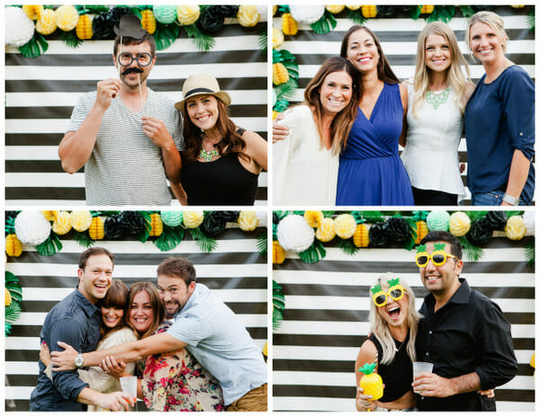 What’s a party without a great party photo opp? I recently came across this website Drops and Props that had the most perfectly matching black and white striped backdrop. To jazz it up a bit, I ordered a bunch of palm leaves and honeycomb balls from Oriental Trading Company and bought out my local Dollar Tree’s stock in honeycomb pineapples. My sister and I hung, stapled, taped, and crafted until the backdrop was complete. It was a pain, but it turned out SO FUN!