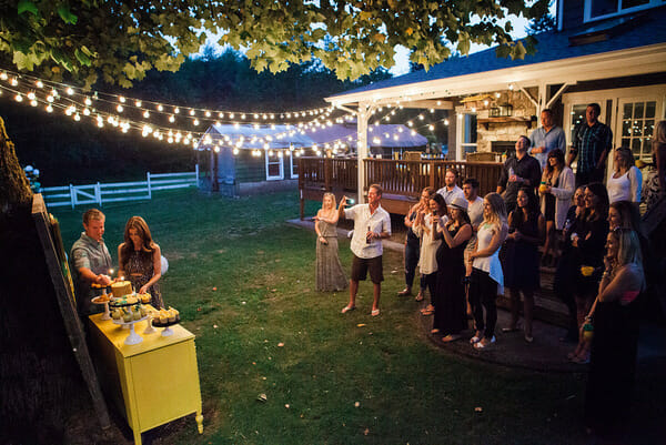 After we cut the amazing cake and stuffed ourselves with dessert, we brought out even more treats for our guests to enjoy, my favorite cruller doughnuts from Frost, take home ice cream favors (super cute containers, twine and spoons from TomKat!), and roasted s’mores around our outdoor fire pit. Pretty sure everyone left with a stomach ache.
