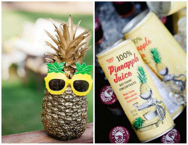 I should have purchased stock in Dole because the amount of pineapples we purchased was kind of crazy. BUT, hollowing out all those pineapples ended up being a gift that kept on giving because we turned them into vases! The florals were stunning by Bash and Bloom, who arranged the flowers in red solo cups and then just shoved them down into the pineapple. Her combination of ferns, white blooms and succulents gave them the perfect mid-century modern look.