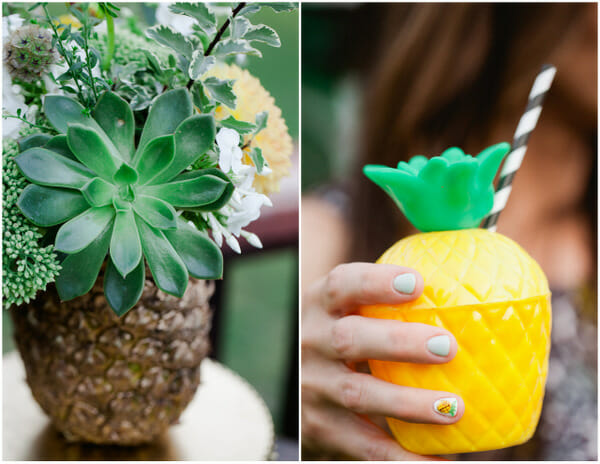 Pineapples are fun, summery, and it seemed like a theme that hadn’t been done. At the time, I couldn’t find a single party invitation (besides a Williams-Sonoma looking housewarming stationary line) and no inspiration whatsoever on Pinterest. Fast forward a couple months and pineapples are EVERYWHERE. I repeat, EVERYWHERE. I see them on bathing suits, beach towels, t-shirts, home decor, jewelry, nails..you name it. There are pineapples. But at the time, nothing.