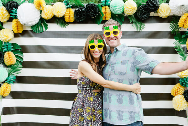 What’s a party without a great party photo opp? I recently came across this website Drops and Props that had the most perfectly matching black and white striped backdrop. To jazz it up a bit, I ordered a bunch of palm leaves and honeycomb balls from Oriental Trading Company and bought out my local Dollar Tree’s stock in honeycomb pineapples. My sister and I hung, stapled, taped, and crafted until the backdrop was complete. It was a pain, but it turned out SO FUN!