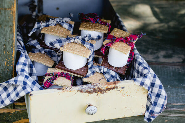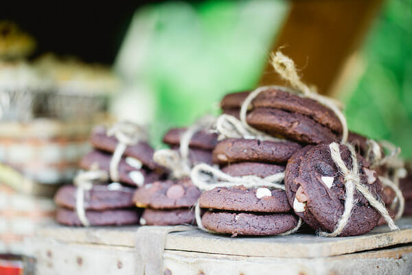 While baking for Hudson’s party, I decided against the usual sugar cookies and cupcakes. They just didn’t fit the theme. I wanted rustic and outdoorsy so I baked homestyle cookies tied in twine, wrapped smore’s kits in fabric scraps, no bake cookies, pb cracker cookies, and ordered mini pies from my girlfriend’s adorable pie shop The Snohomish Pie Company.