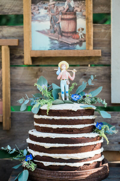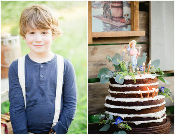 For Hudson’s cake, I baked a naked chocolate cake, with a german chocolate & buttercream filling. It was delish! I found a vintage Huckleberry Finn cake topper on eBay, and added fresh greens around the outside. It was a hit with the birthday boy.