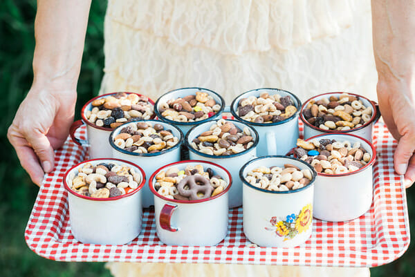 Vintage enamelware mugs were filled with Hudson’s favorite trail mix.