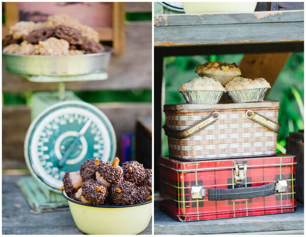 The pb cracker cookies and acorn donuts sat inside an old tin box I found at a vintage market. (Recipes for both found in my book Eat More Dessert)
