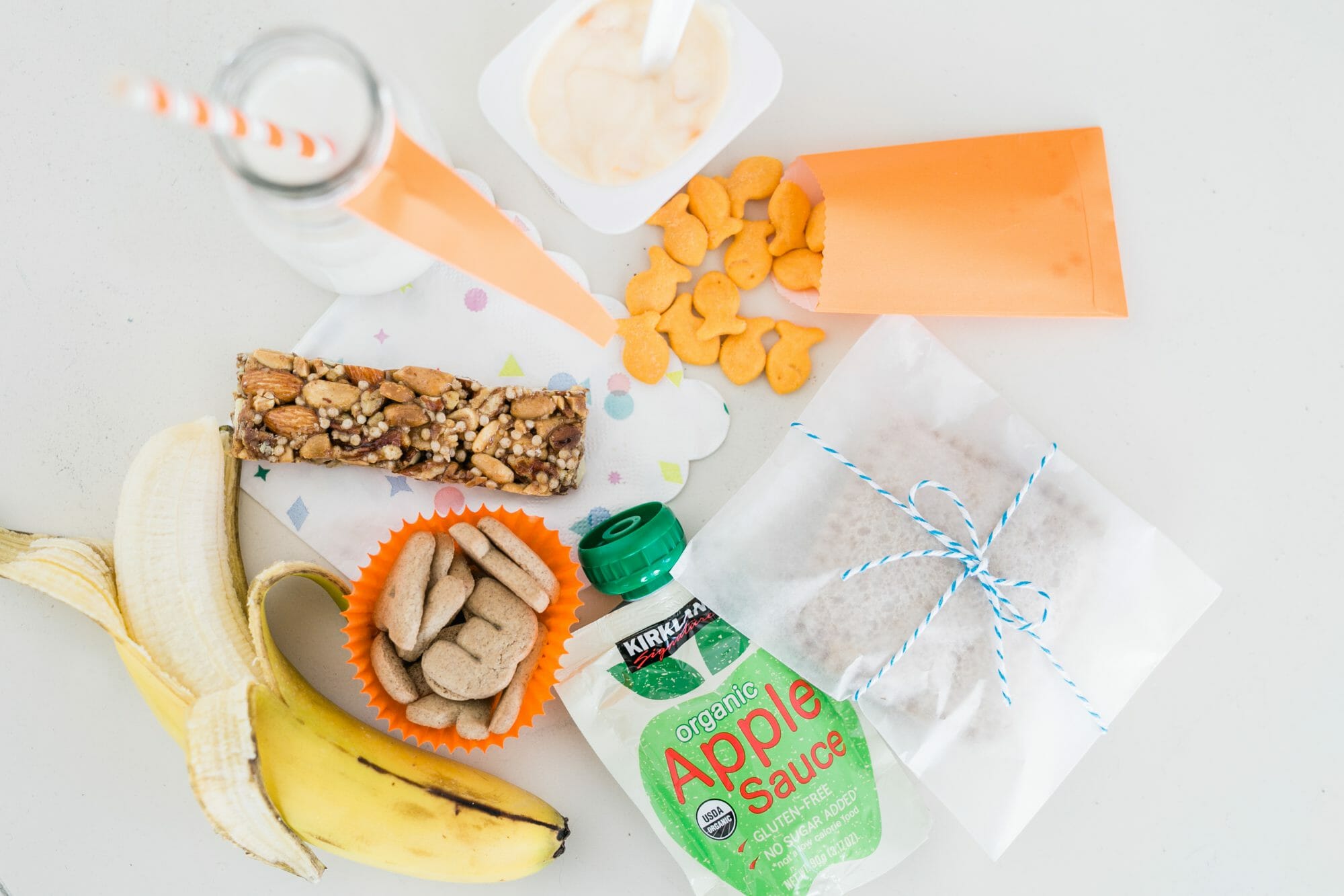 To round out the sugar, offer guests a STORKS lunch. Fill gable boxes with a fun lunch (fruit, yogurt, apple sauce, sandwich, etc). Tie in flour sack towels to resemble a STORKS package!