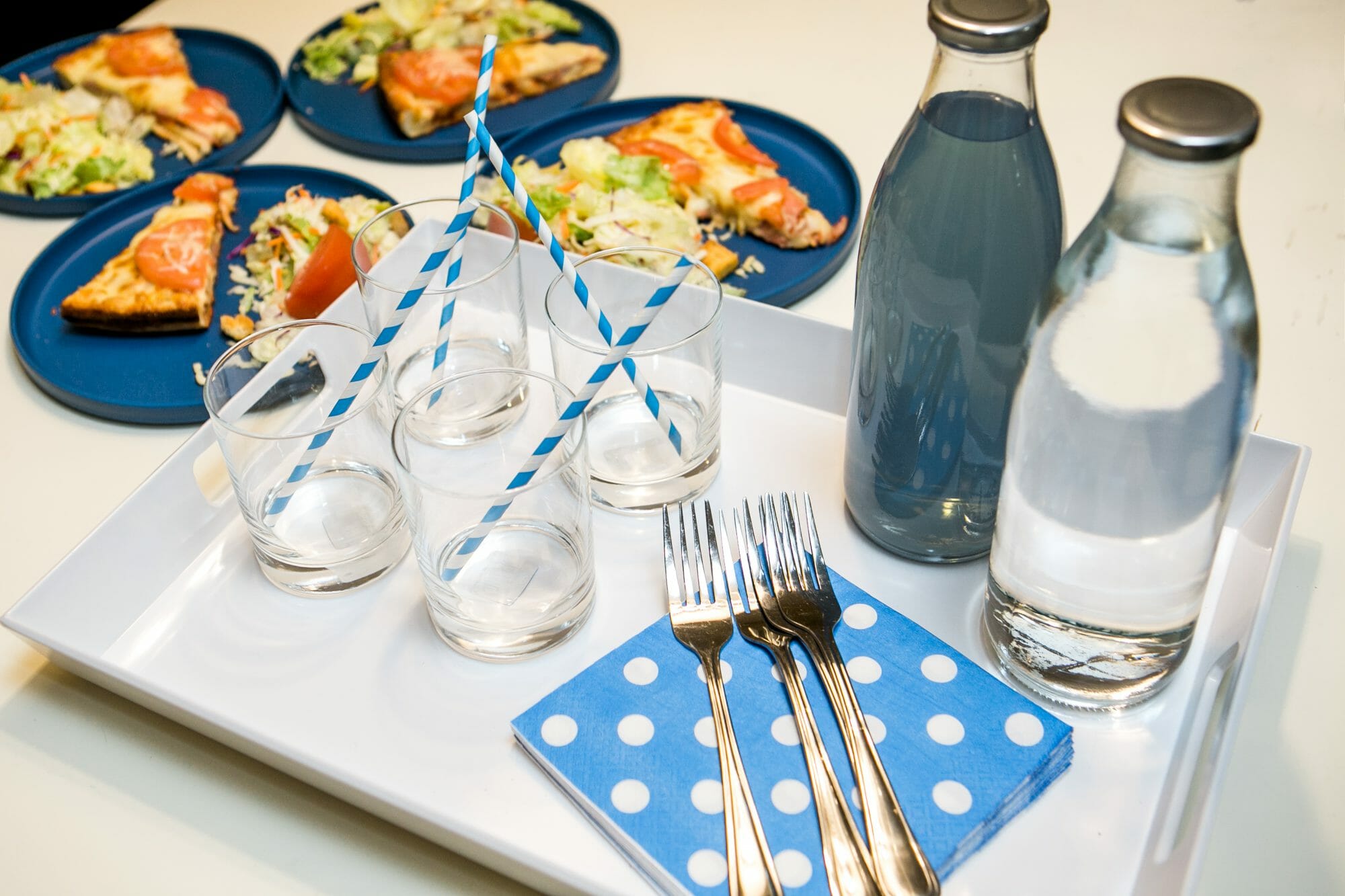 We organized our movie night menu around our favorite movie snacks. Pizza, soda and popcorn! We ordered pizza from one of our favorite restaurants and had a tray of soda ready to go.