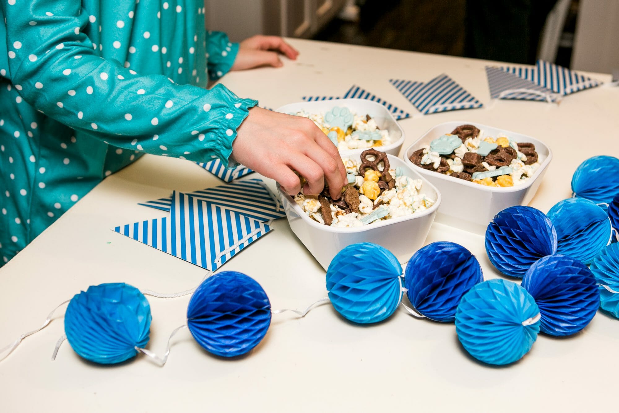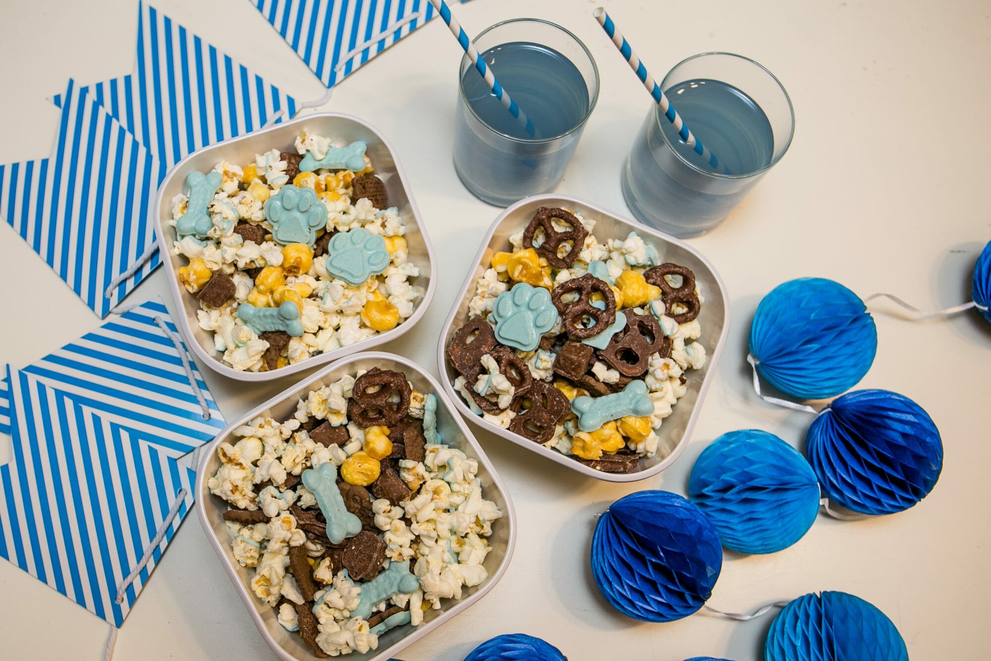 For our snack, I made a huge batch of my favorite movie night popcorn mix. It’s super easy to do and everyone loves it! It’s a combination of sweet and salty treats. (See recipe below).