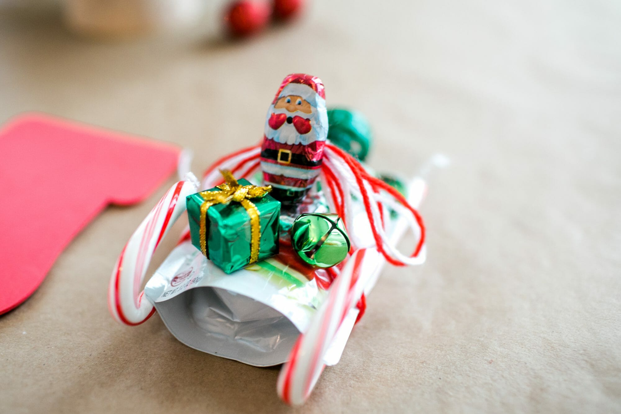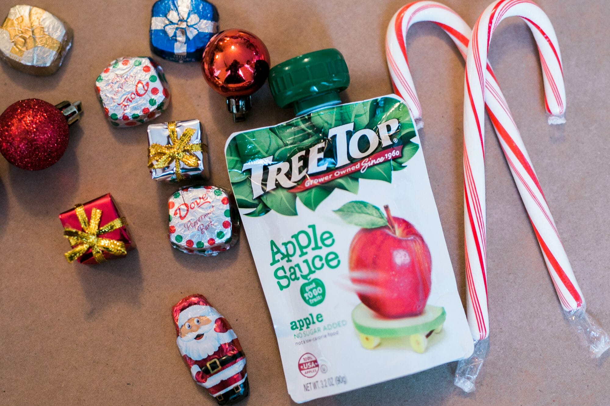 After all the messy cookie and gingerbread decorating, the kids got creative at our crafting station. We made Santa’s Sleigh out of Tree Top’s Apple Sauce Pouches and assorted holiday candies.