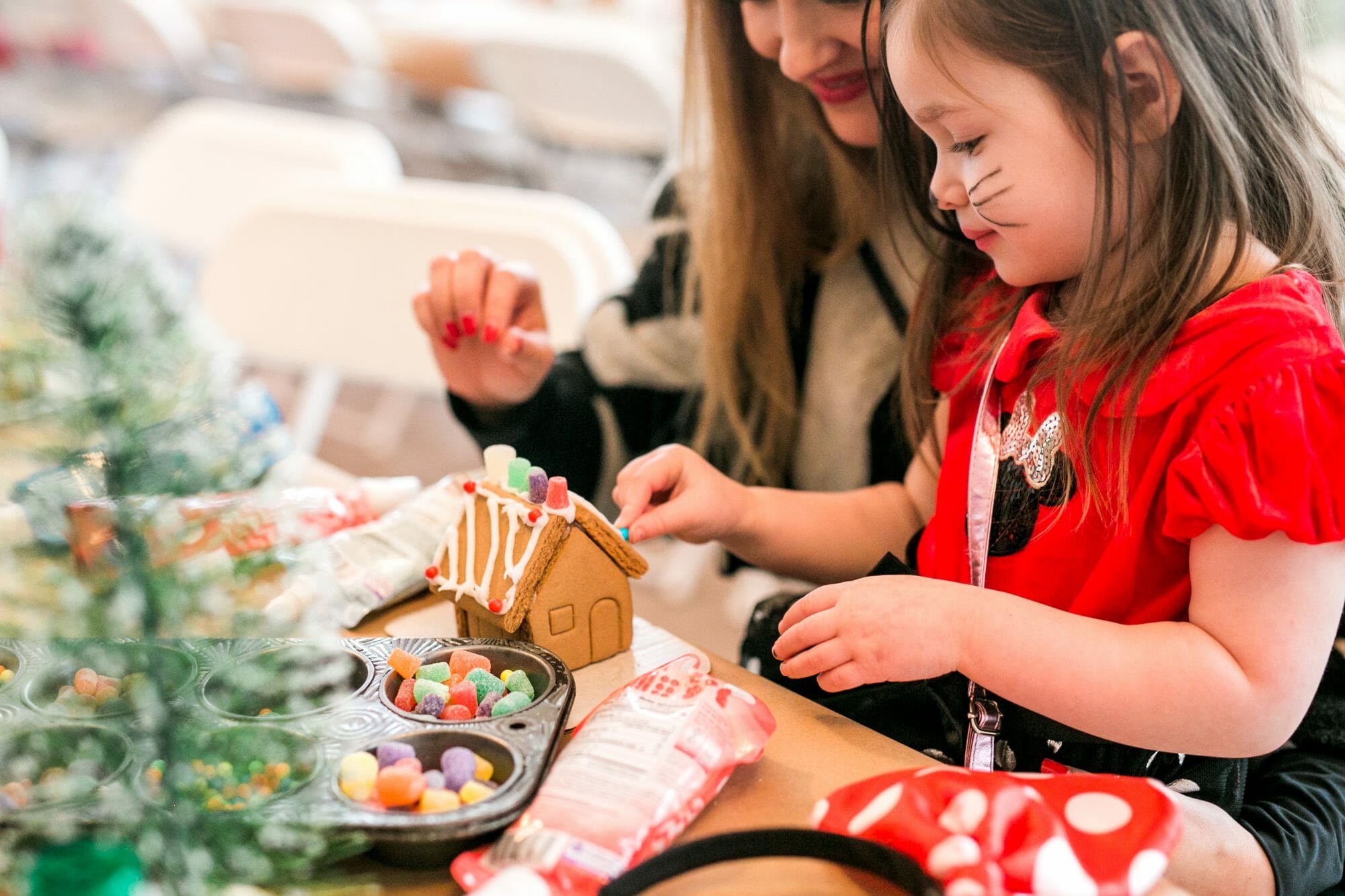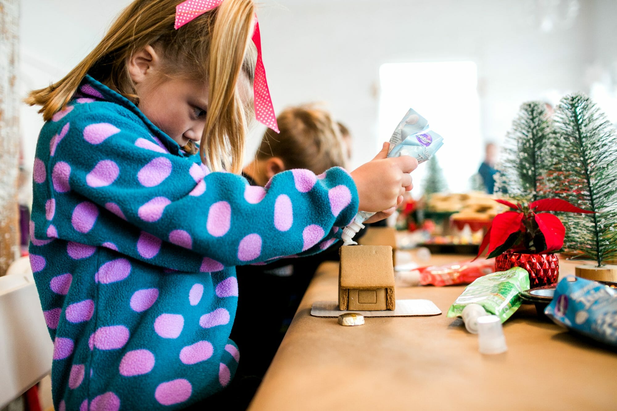 First on the kid’s agenda was gingerbread house making. The kids absolutely loved it. It was chaotic and noisy, but not a difficult crowd! Each child found a seat and got to work. They did such a great job!