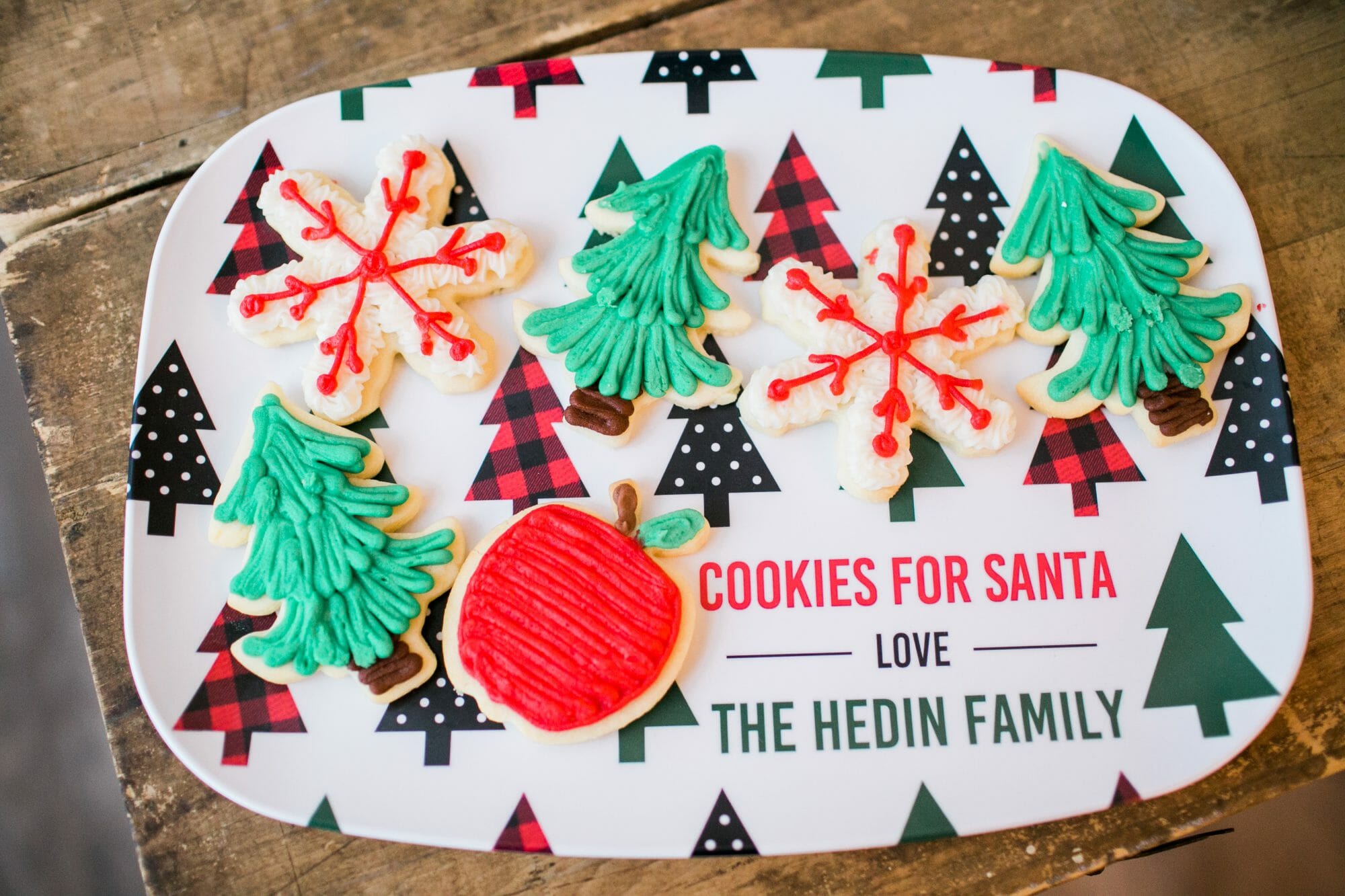 The kids decorated cookies to place on the cutest personalized Cookies for Santa plattters (by Arla Creations).