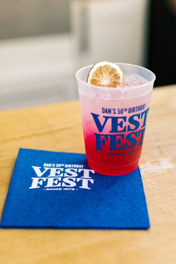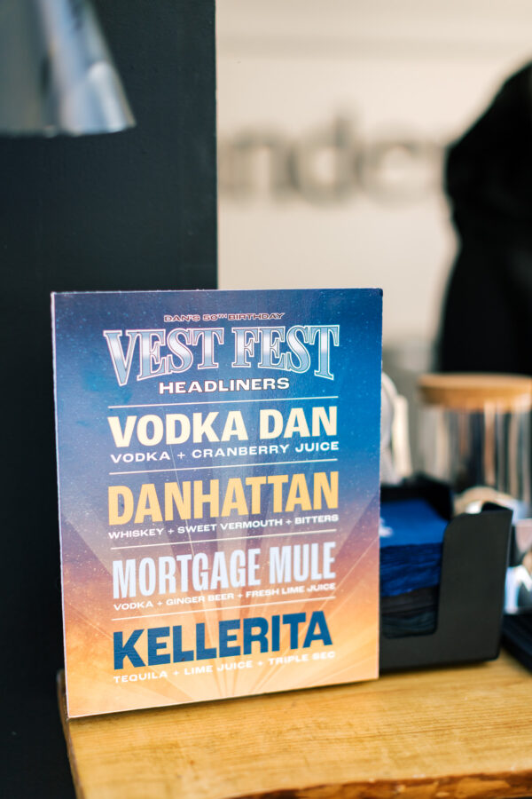 And if you know Dan, you know he practically lives in a vest. Always in a vest, usually Vuori. Which made the theme practically write itself: I’d throw him a VESTIVAL.