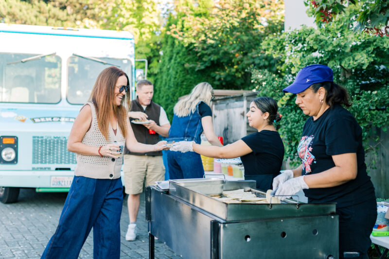 By the end of the night, with everyone in their vests, plates piled high with tacos, dessert and ice cream, under the glow of the marquee, it was clear a Vestival fit Dan perfectly. It felt fun, relaxed, and completely true to him, which is exactly what I hoped for. So if you’re ever planning a milestone party for someone hard to surprise, start with what they love most. Build around that, add in a little humor, and don’t forget the merch!