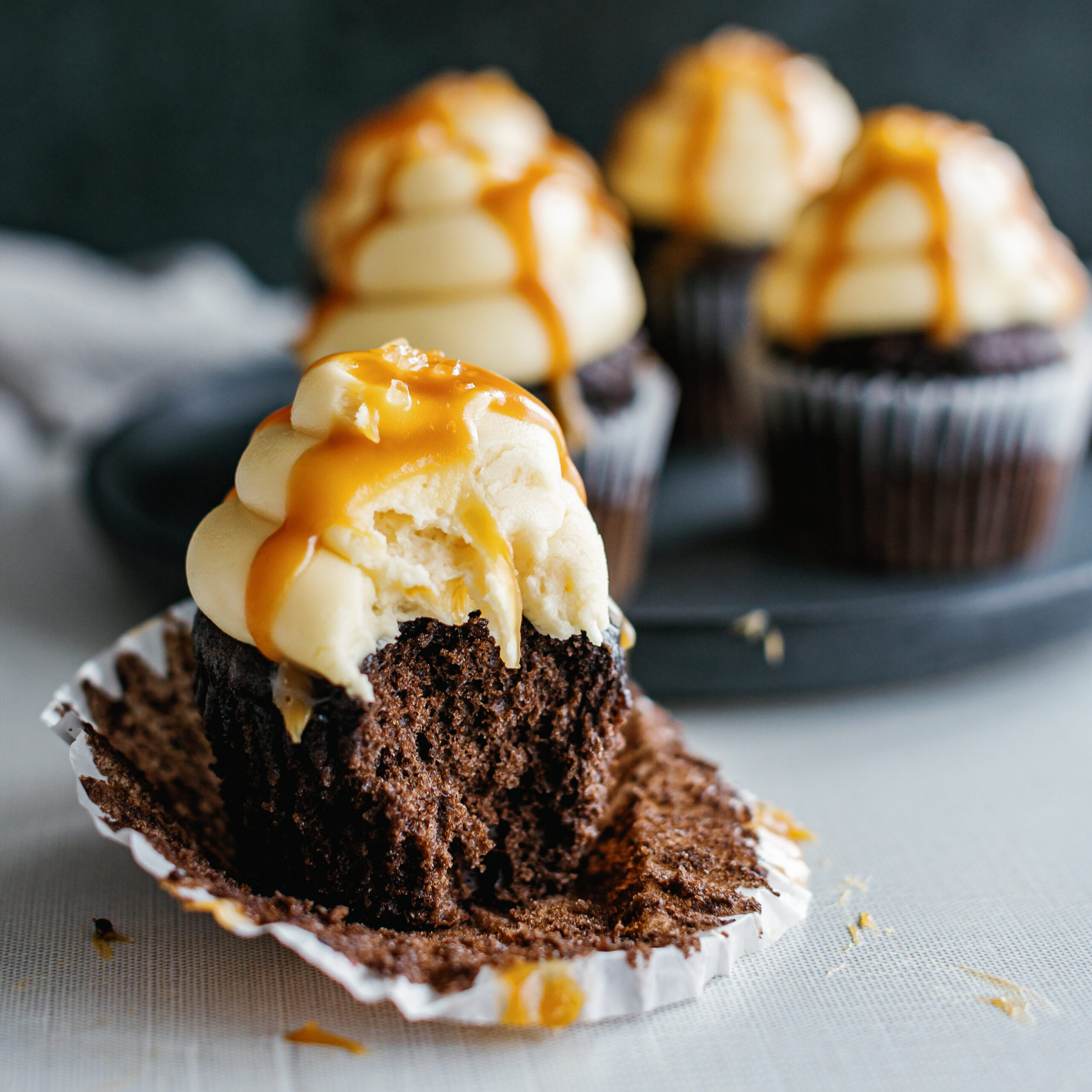 Chocolate cupcakes with salted caramel buttercream