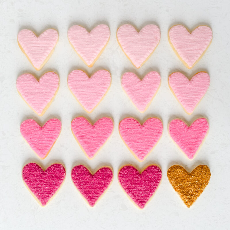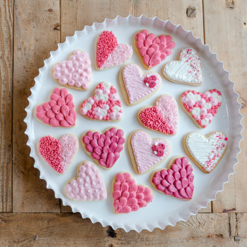 Sugar cookies are perfect for Valentine’s Day because they can be as simple or detailed as you want them to be. They’re especially sweet for baking with kids or for spreading the process out over a few days.