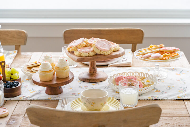 Mix homemade and store-bought treats, use what you already have, and focus on presentation just enough to make it feel intentional. Cake stands, cute parchment paper, and a few seasonal touches can make even the simplest desserts feel festive.