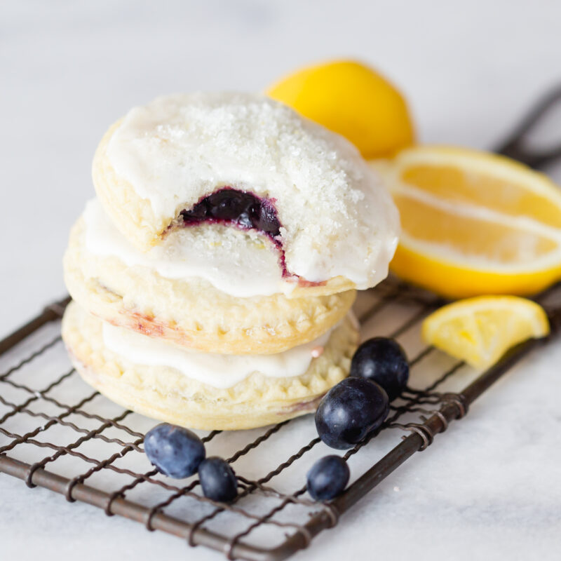 These lemon blueberry pie cookies are one of those recipes that look a little extra, but are actually really simple once you get going. They’re made with pie dough, filled with a quick blueberry compote, sealed like little hand pies, and finished with a light lemon glaze.