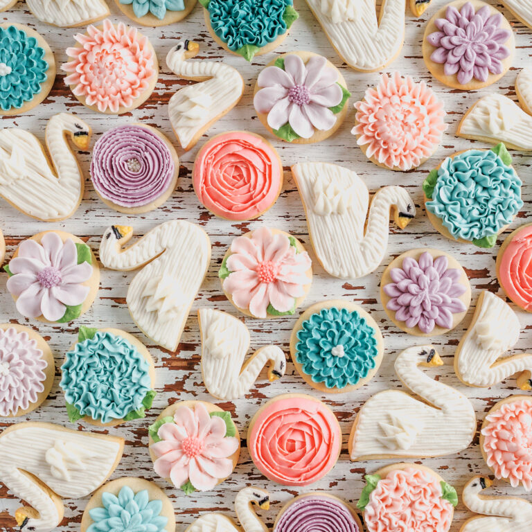 Floral Cookies with Swans