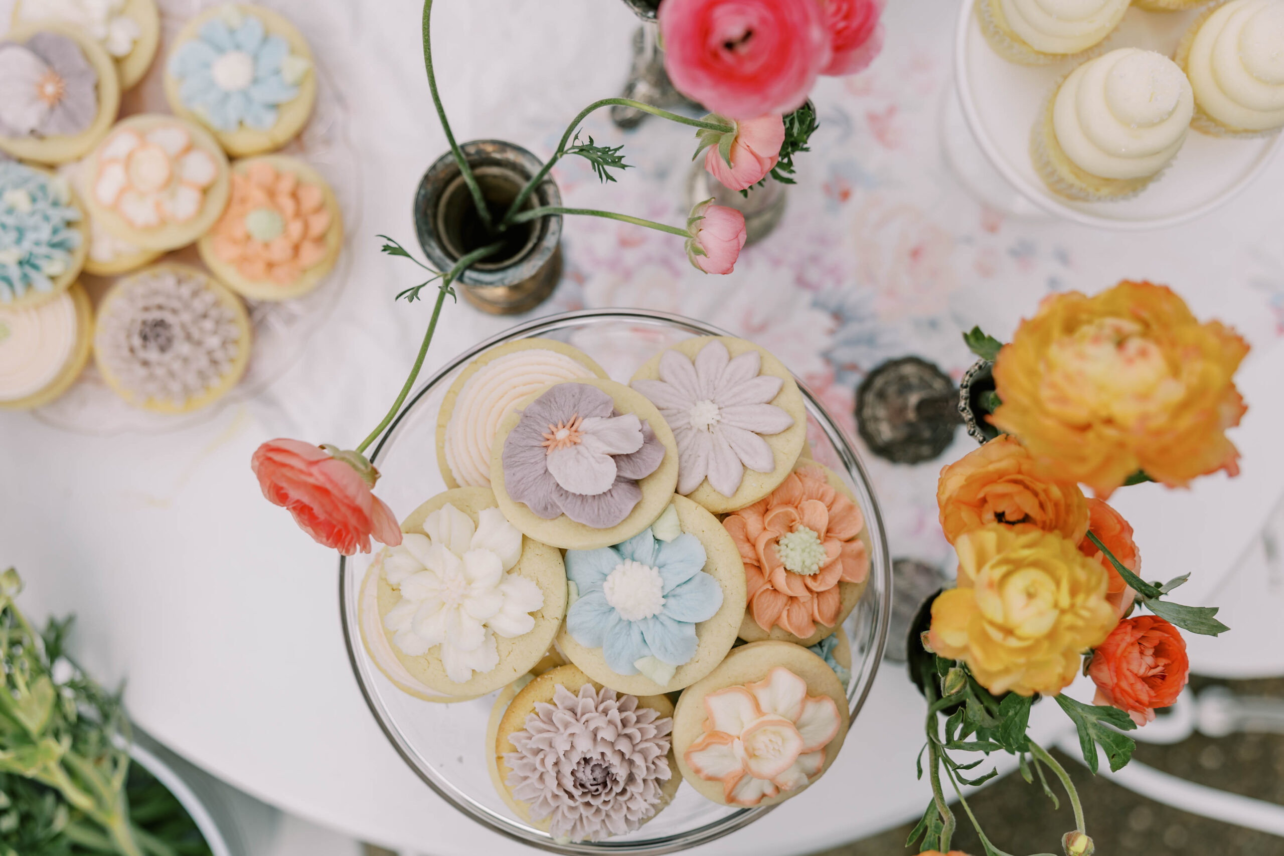 Instead of focusing on one flower, you create a small arrangement right on the cookie. A mix of colors, a few different piping styles, and it starts to look like a little bouquet.