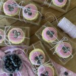Grab one layer of the mini cake and add a layer of frosting to the top.